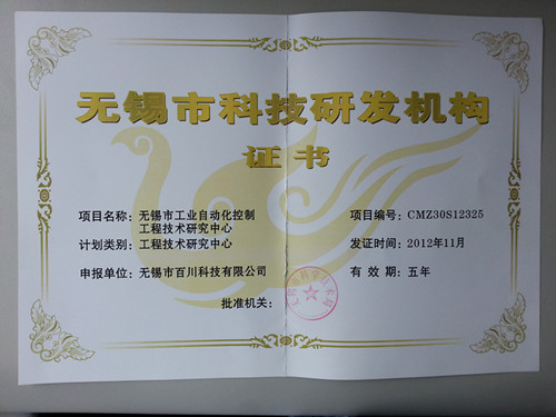 無錫市科技研發(fā)機(jī)構(gòu)證書